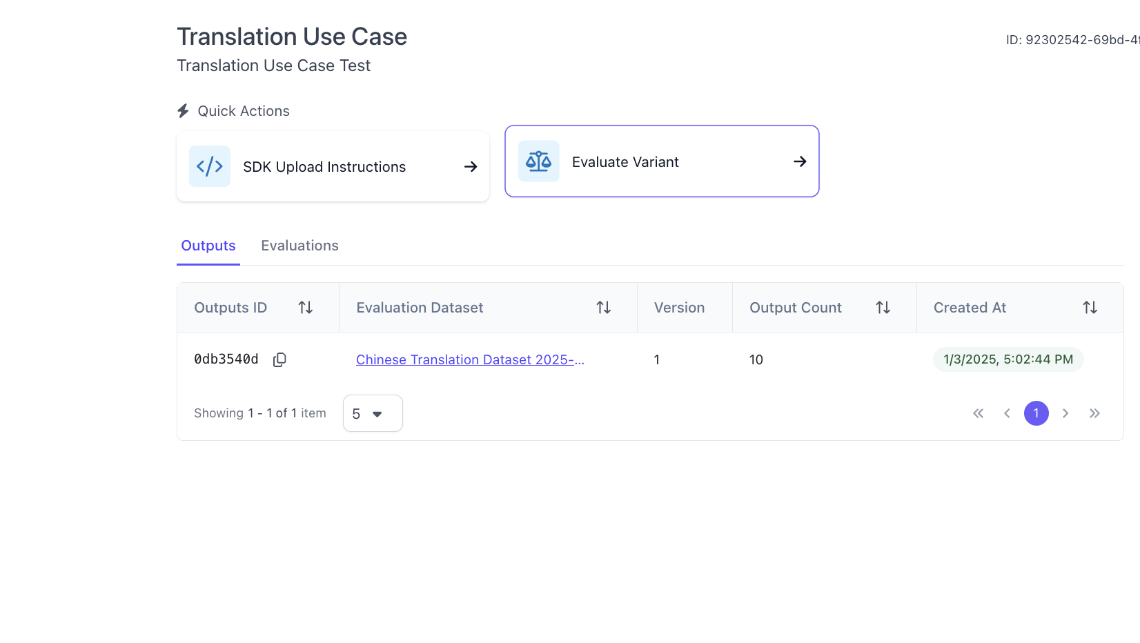 Once you have the application and dataset created, navigate to the application view and click on “Evaluate Variant”
