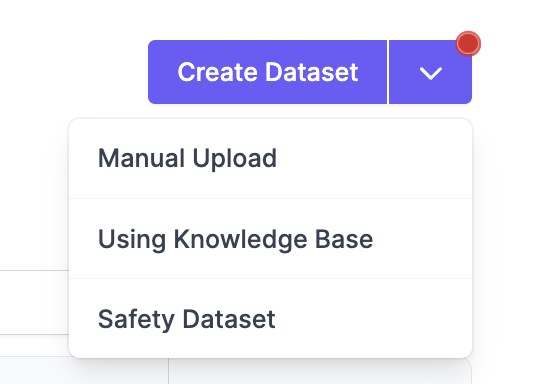 To upload datasets manually through the UI, navigate to Datasets under Evaluation. From there, select Create Dataset and choose the Manual Upload option.